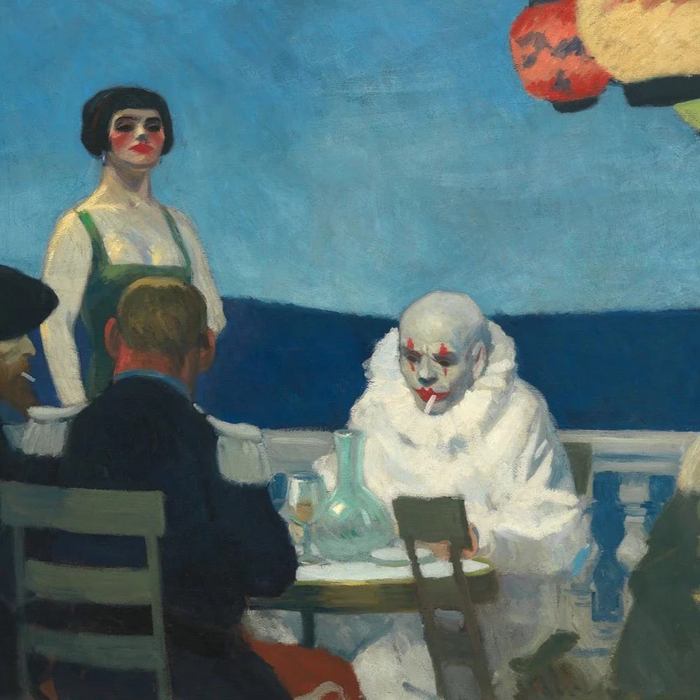 “Hi, hi,” said Les –– his accent was Australian, and his eyes were so light they seemed inhuman. “Come meet my friends.” He turned around, “Well, new friends. I showed up completely alone. My friends are doing Ket on some spaceship out in the middle of the ocean. I aged out of that about three years ago.”